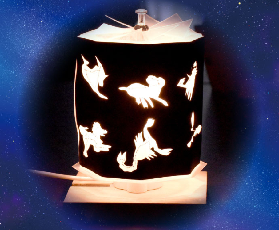電球の熱の力でくるくる回る12星座の走馬灯を作ります。