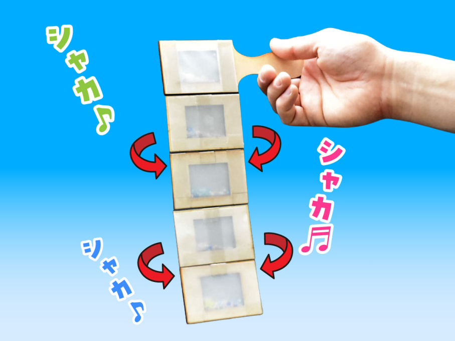 パタパタ回転する世界に一つだけのおもちゃを作ります。中に入れたビーズが動き、音がなる様子も楽しめます。