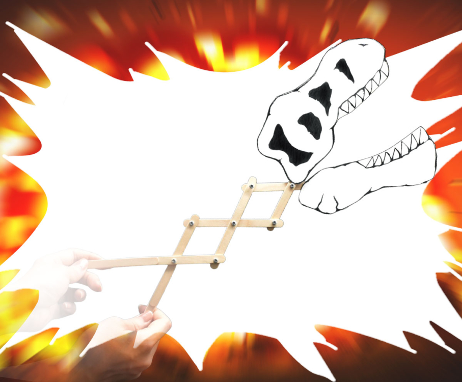 ガラクタを使って、恐竜の口が動くマジックハンドを作ります。