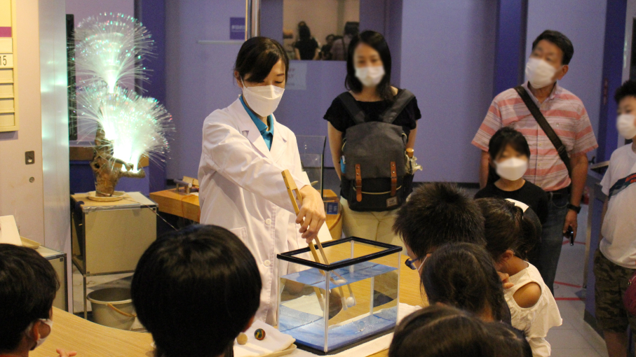 浮力など水にまつわる力や現象について、身近なものを使った実験で確かめます。